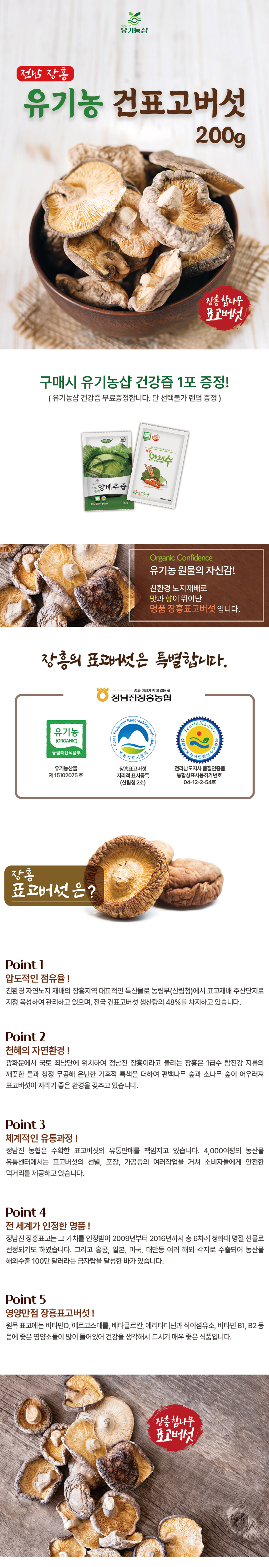 국내산 유기농 건표고버섯 200g