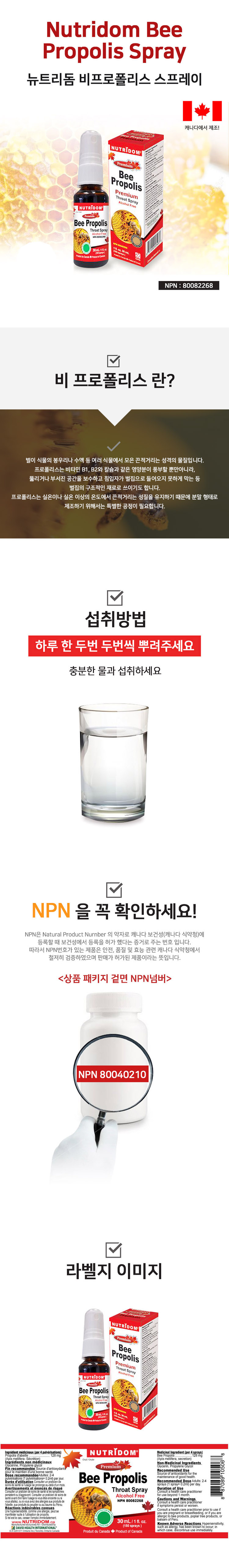 [캐나다비타민] 뉴트리돔 비프로폴리스 스프레이 30ml