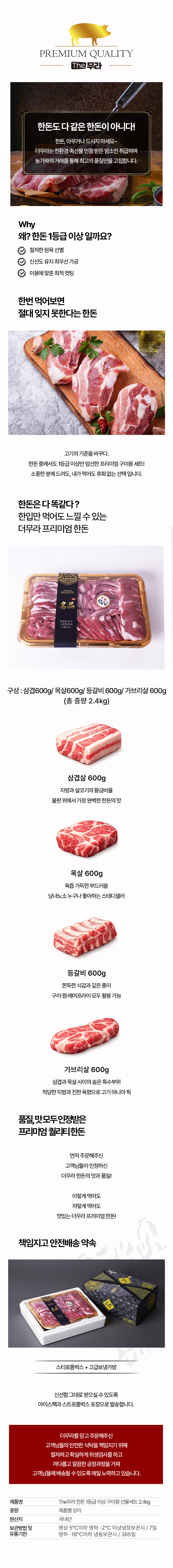 The무라 한돈 1등급 이상 구이용 선물세트 2.4kg (삼겹600g 목살600g 등갈비600g 가브리살600g)