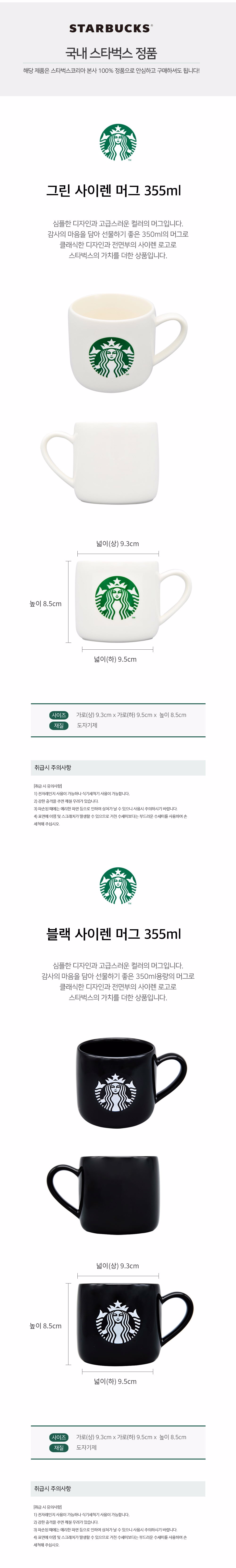 [스타벅스] 사이렌 머그 355ml 2개 세트 (블랙/그린) 쇼핑백포함