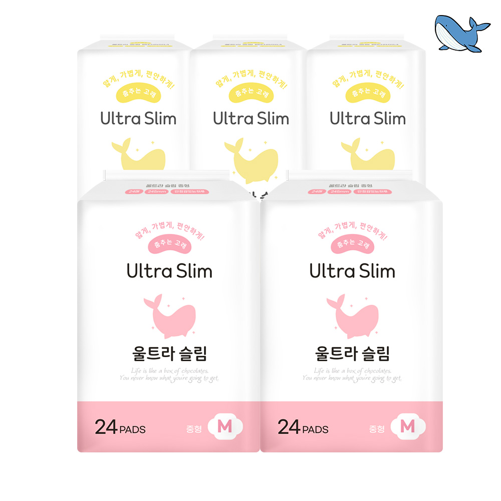 [춤추는고래] 대용량 생리대 중형 2팩+슬림 팬티라이너 3팩 (168P)