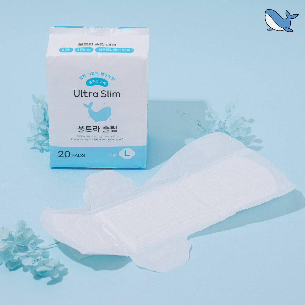 [춤추는고래] 대용량 뽀송한 에어 엠보 생리대 대형 20매 X 1팩