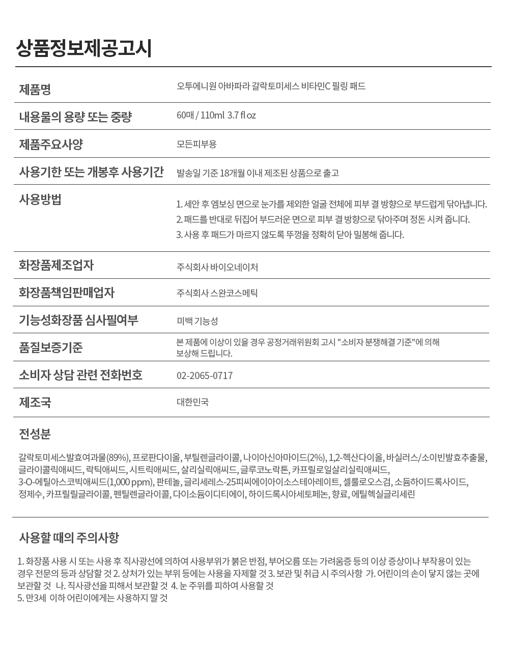 O21 아바파라 갈락토미세스 비타민C 필링 패드 60매