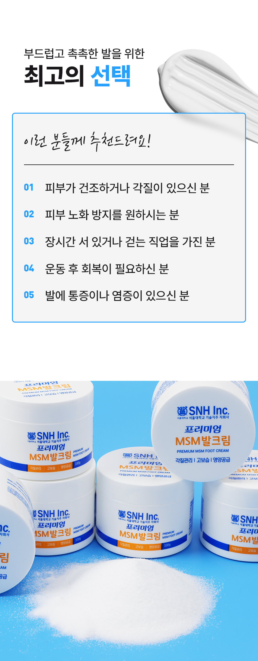 서울SNH 프리미엄 MSM 발크림 100g 고보습 풋크림 각질관리 영양공급