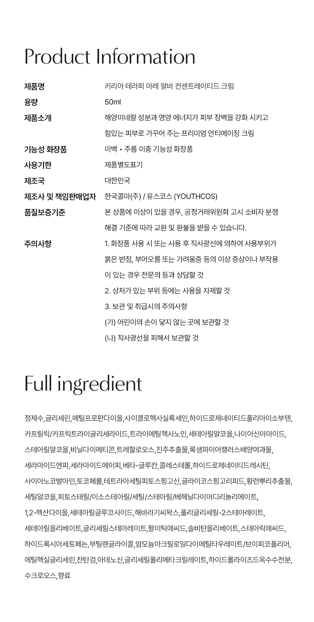 키리아 테라피 마레 알바 컨센트레이티드 크림 50ml