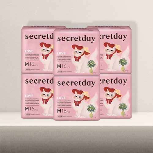 시크릿데이 러브 생리대 날개형 입는오버나이트 중형 16개입 x 6세트